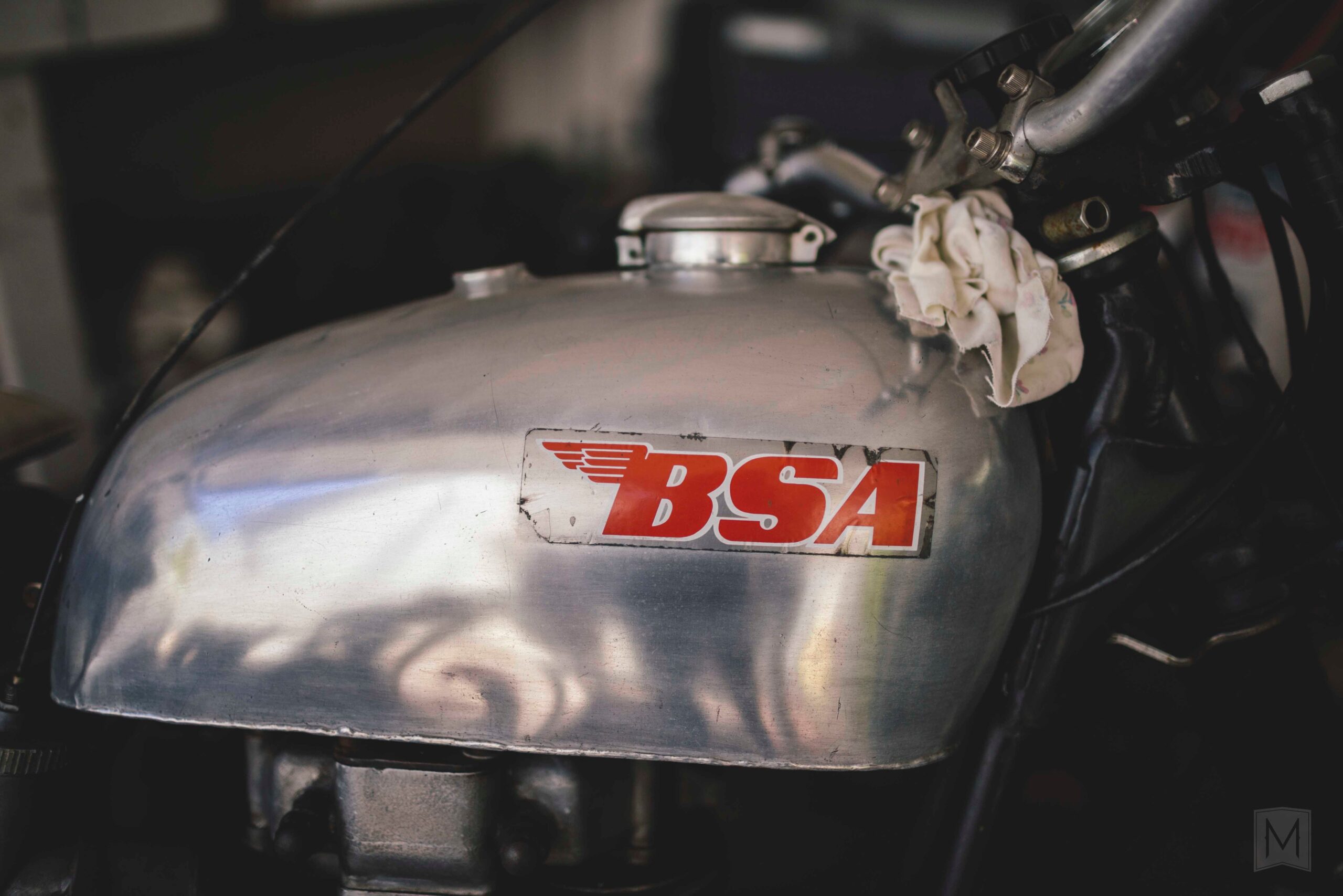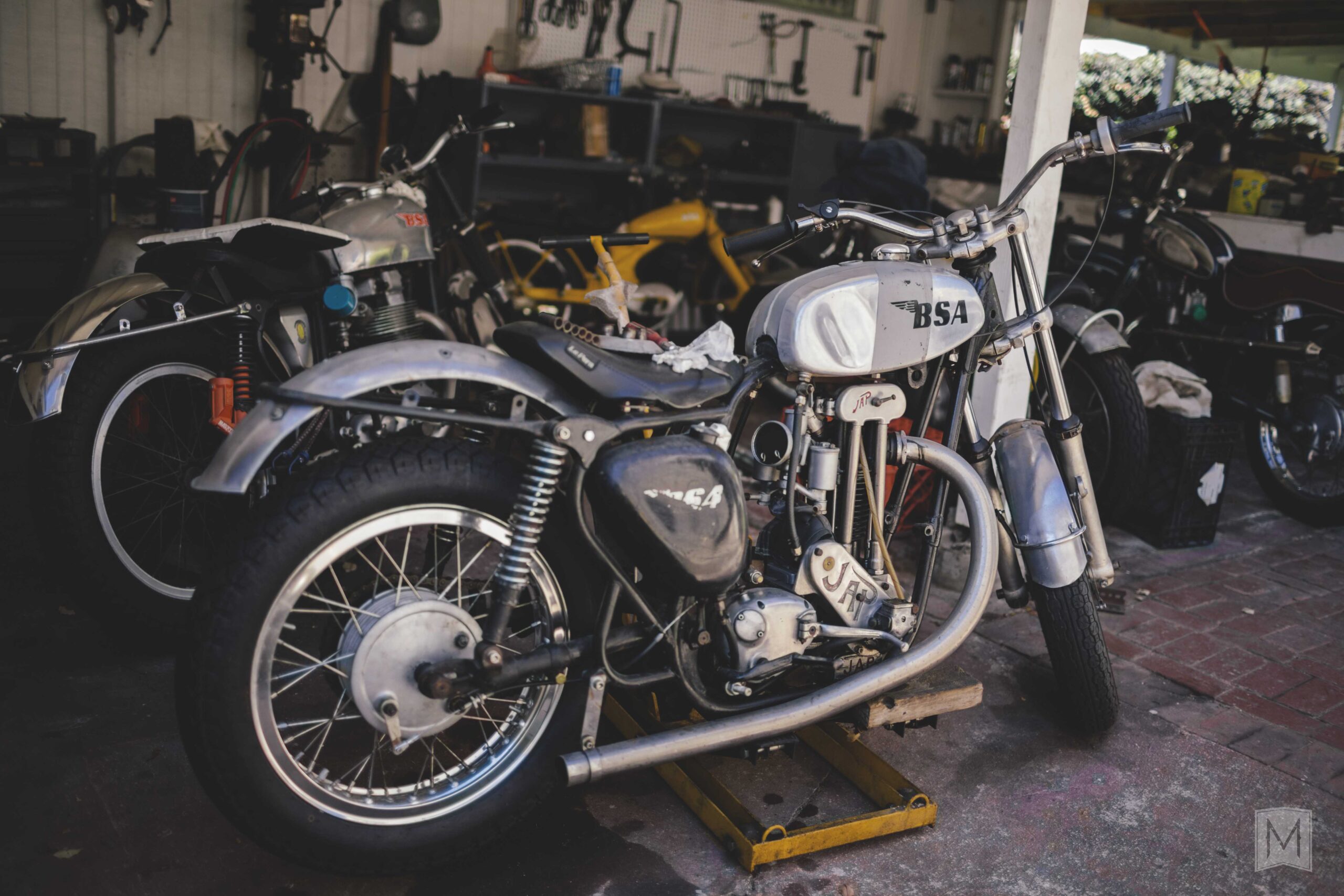 A few of his bikes in his workshop left me baffled. Always looking for ways to improve an engine, he would match different types of bikes to one another. He’d pick the best characteristics of each and blend them together to make a perfect machine. One, for example, is a grafting of a Yamaha TT500 top end onto a BSA Goldstar bottom end. When asked why, he simply said, “I wanted an overhead camshaft Goldstar.” He configured and built the engine right there at home.